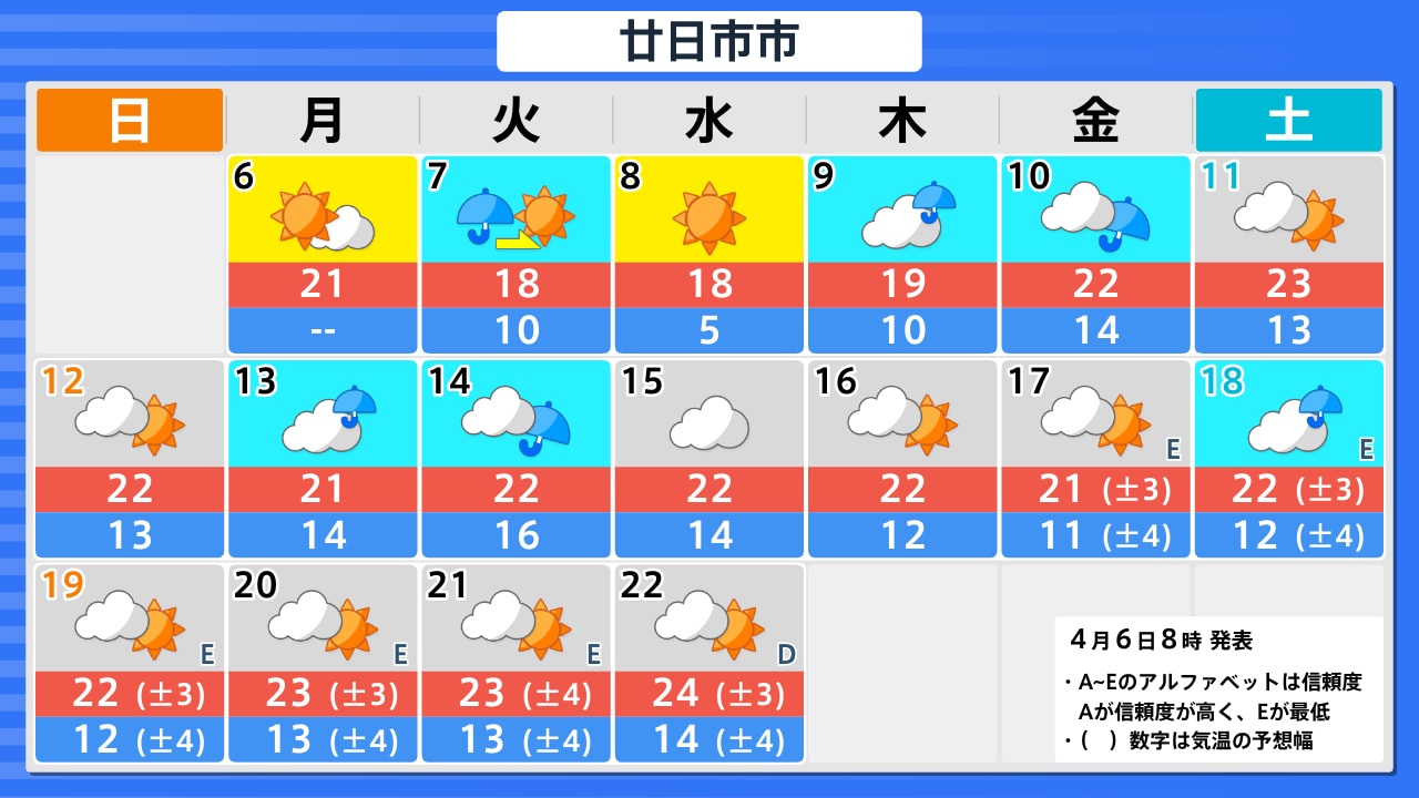 4月6日(月)の天気