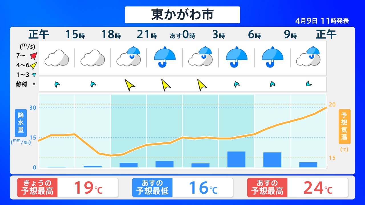 東海地方 今夜~明日は広く雨 雷にも注意を 週末は汗ばむ陽気に 愛知・名古屋・岐阜・三重の天気予報(4/9 昼)