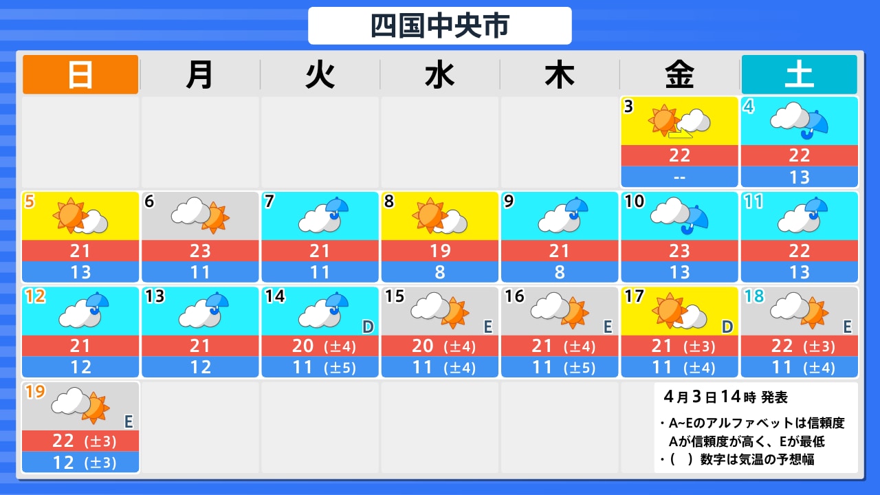 3日(金)の日中はお花見日和 1日の寒暖差大 愛媛