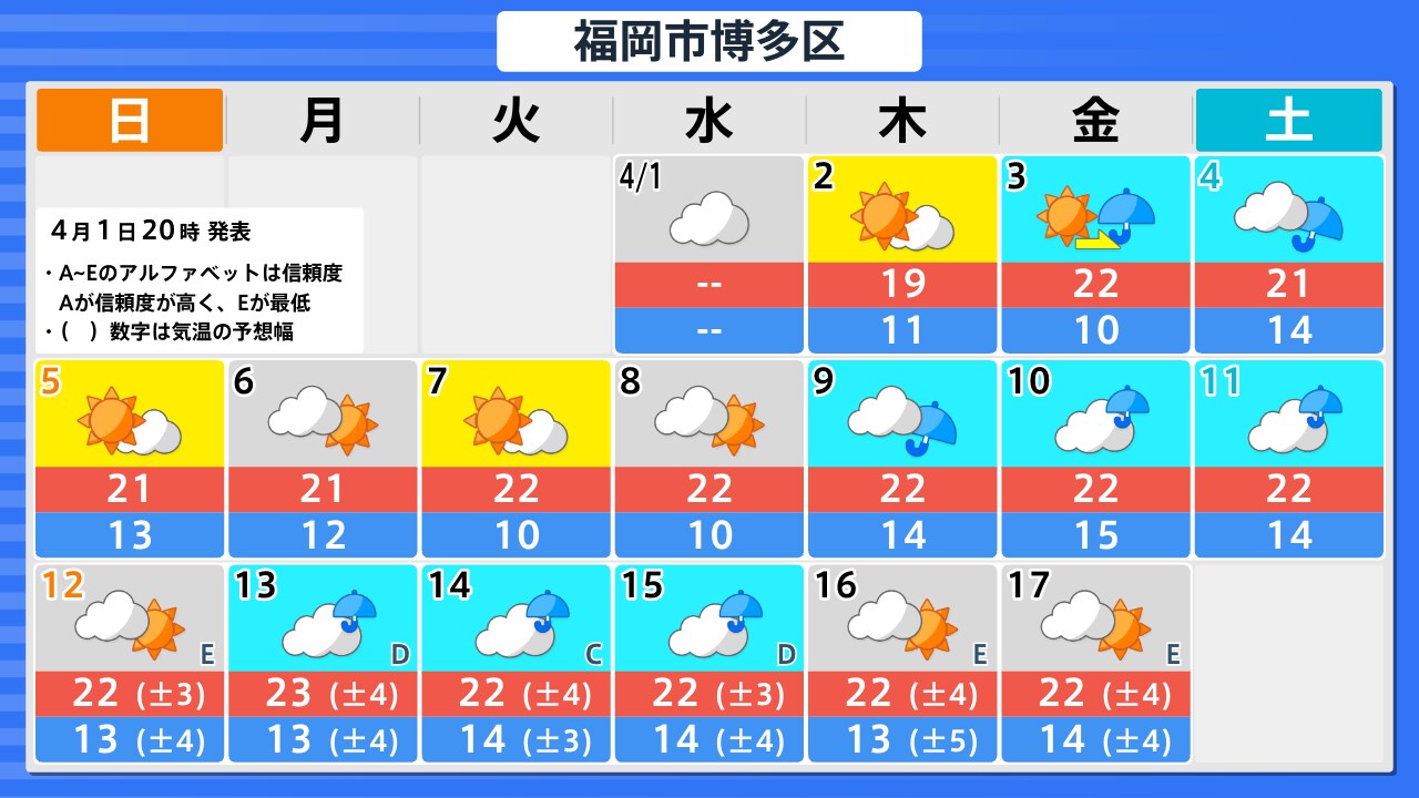 4月1日(水)の天気