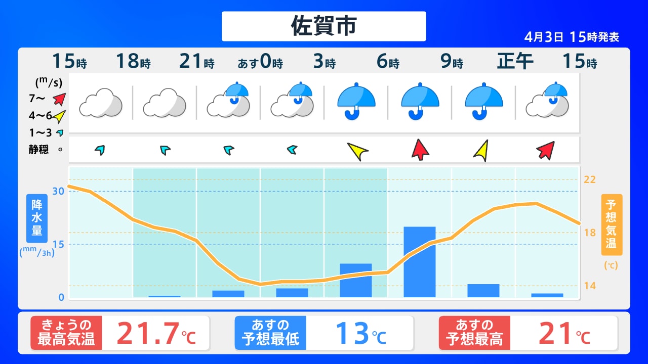 【気象】3日 瀬戸内地方の夜は曇り 4日 断続的に雨が降る見込み 朝の最低気温は岡山で14度 津山で11度 高松で13度