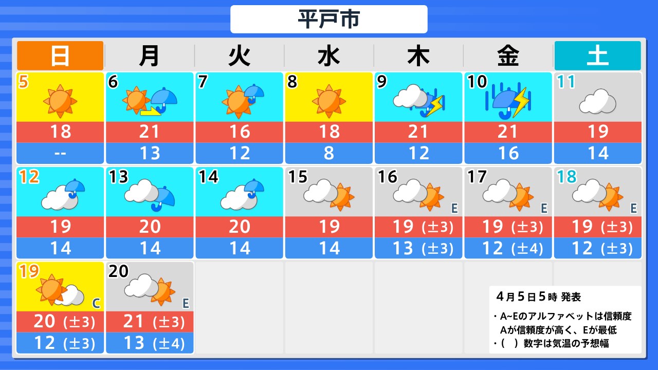 4月5日(日)の天気