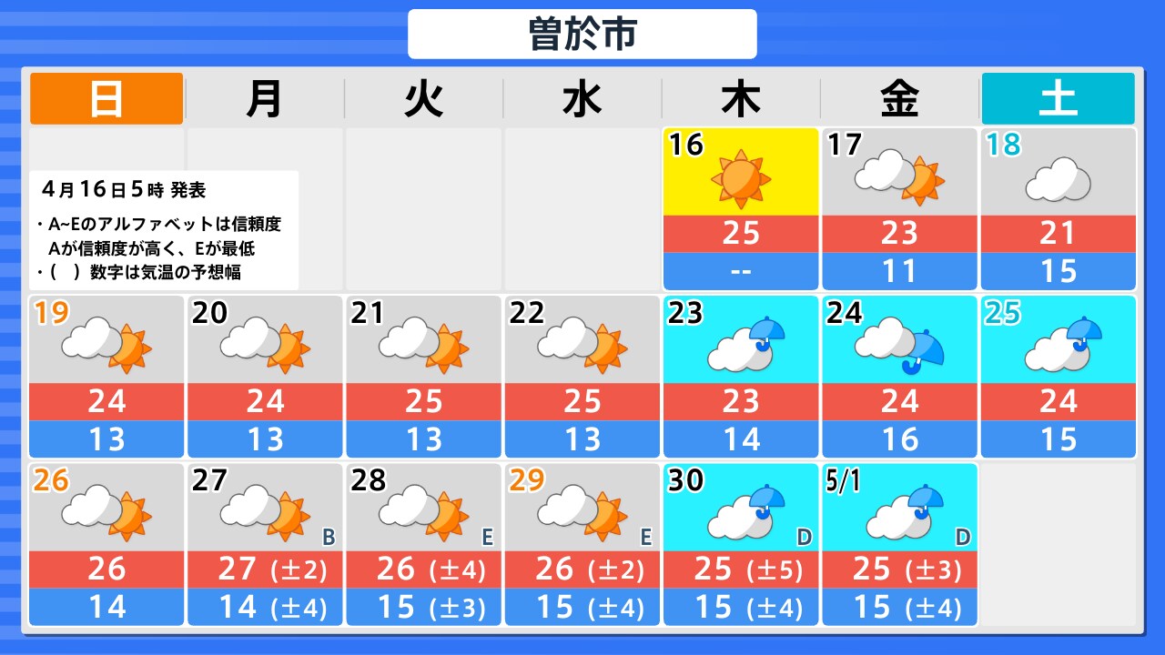 4月16日(木)の天気
