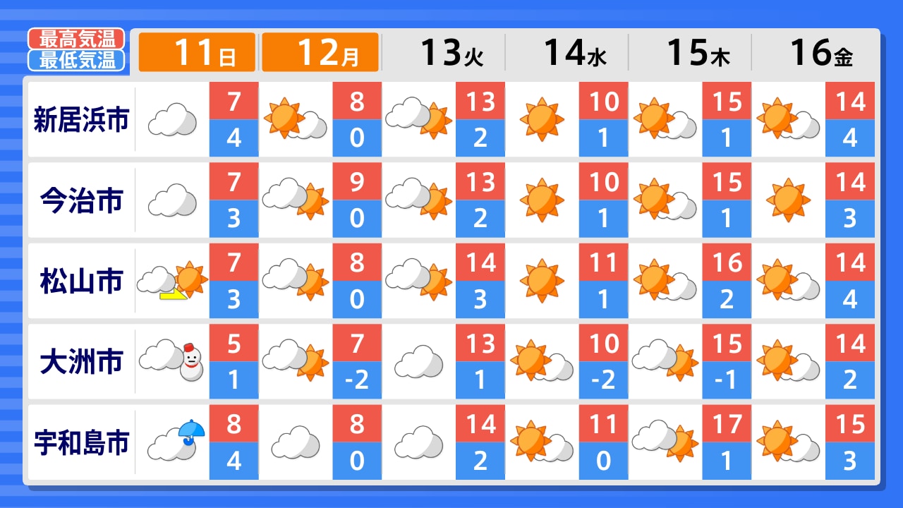 伊方町 大洲市 宇和島市 松山市 久万高原町 今治市 新居浜市 四国中央市