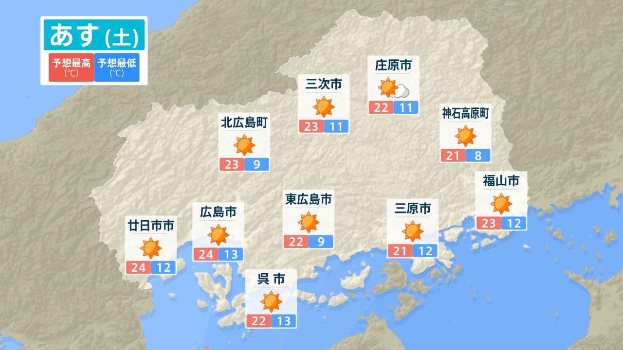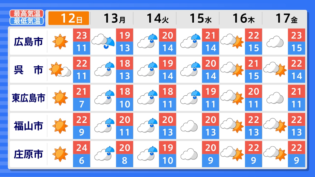 【4/11・12(土日)広島天気】晴れて行楽日和 汗ばむ陽気に