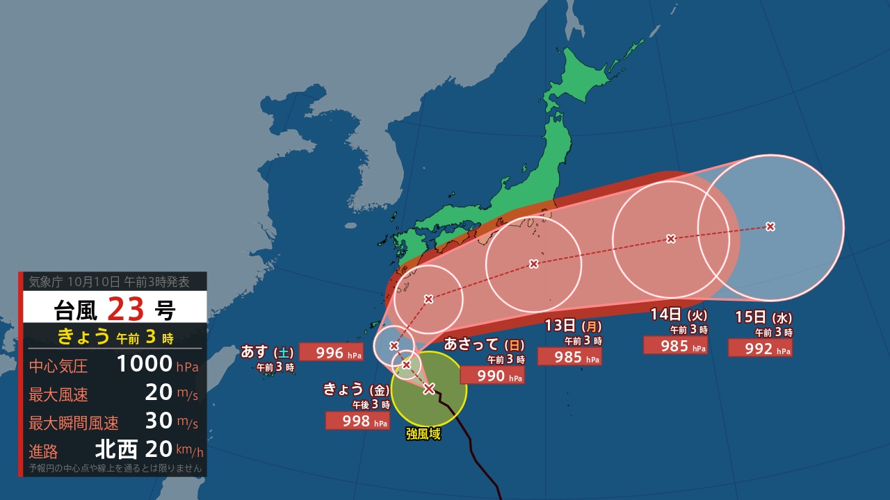 【台風情報】今度は「台風23号」接近中 10日(金)~13日(月)にかけ奄美~九州~四国~近畿~東海~関東の沿岸部を通る見込み 3連休の各地の天気は?今後の進路は? 気象予報士が詳しく解説【気象庁 9日午後10時50分更新】