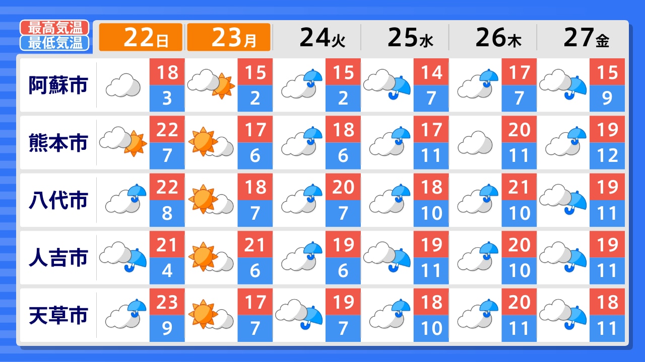 2月20日(金)【熊本の天気】3連休は春の陽気 日曜は春一番の可能性も RKK気象予報士の天気解説 <阿蘇や天草のライブカメラも配信中>