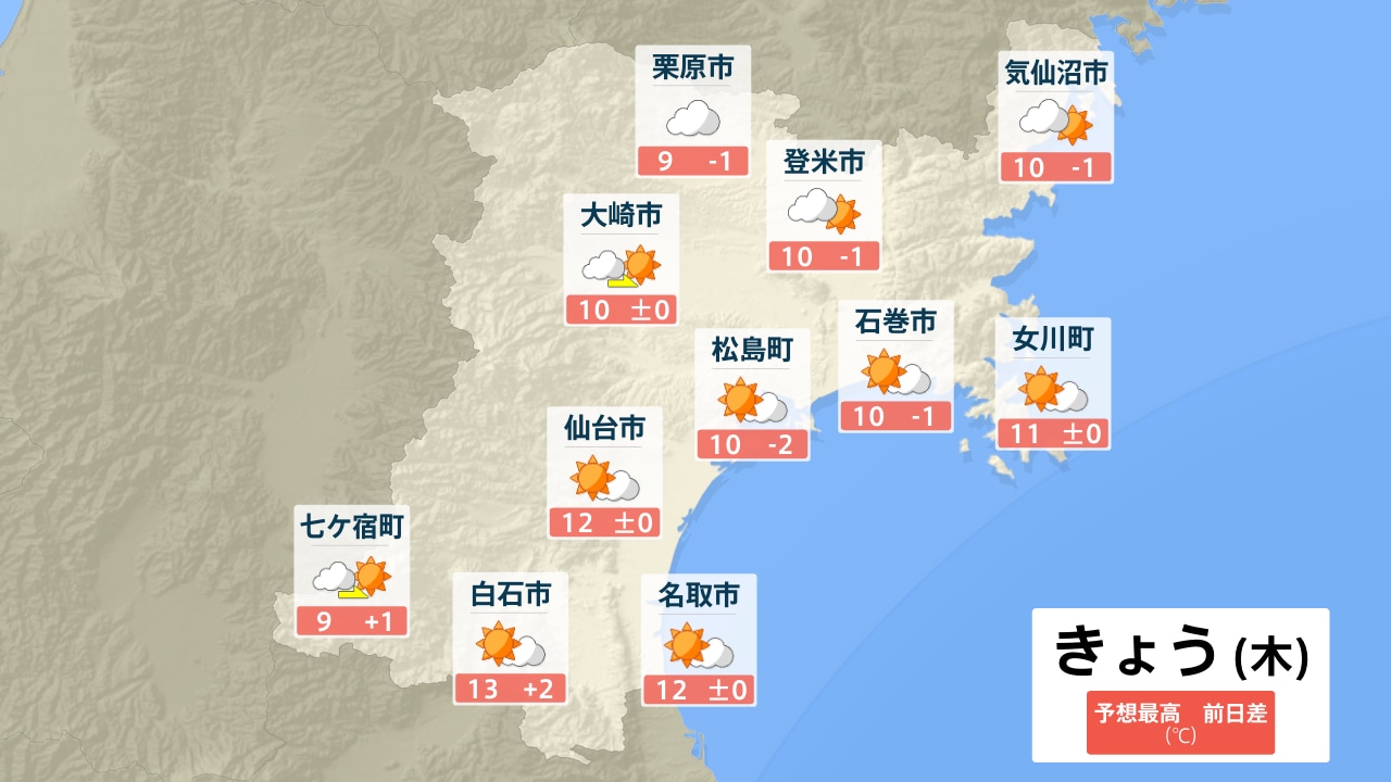 5日(木)は雲が主役も昼間は春の陽気 愛媛