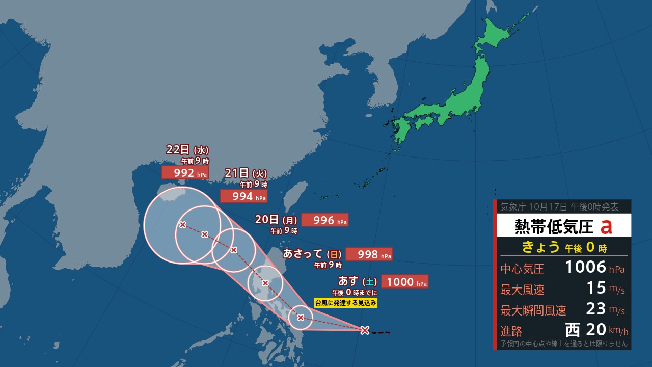 新たな台風、フィリピンの東で発生へ…進路予想は?土日は“台風”でなく“前線”で天気が荒れるところも…各地の雨の降り方をシミュレーション画像で見る