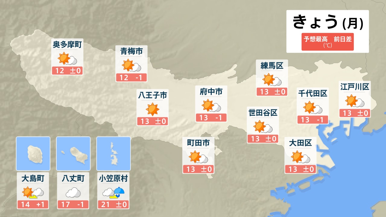 予想最高気温は名古屋・岐阜で14℃ 3月並みの暖かさに 夜は岐阜で雪や雨が降る所も 愛知・岐阜・三重の天気予報(1/19昼)
