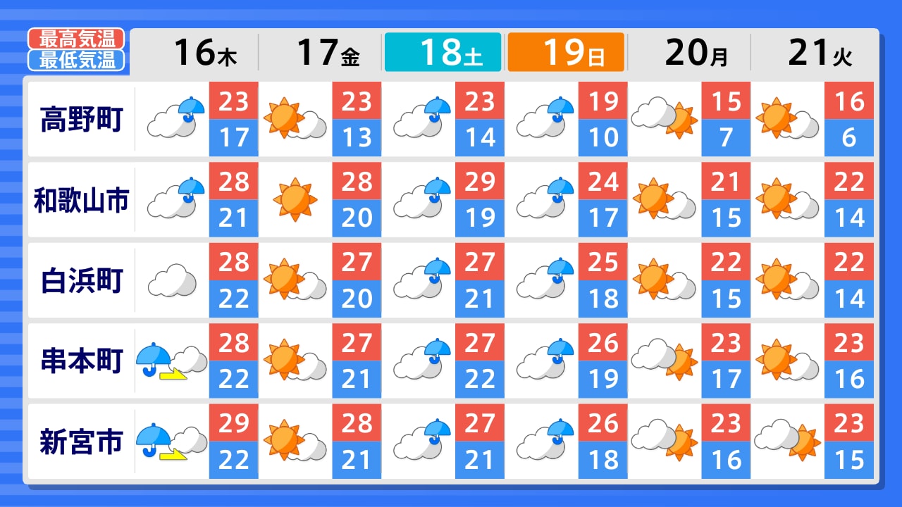 和歌山市 有田川町 御坊市 高野町 田辺市 白浜町 すさみ町 北山村 新宮市 串本町