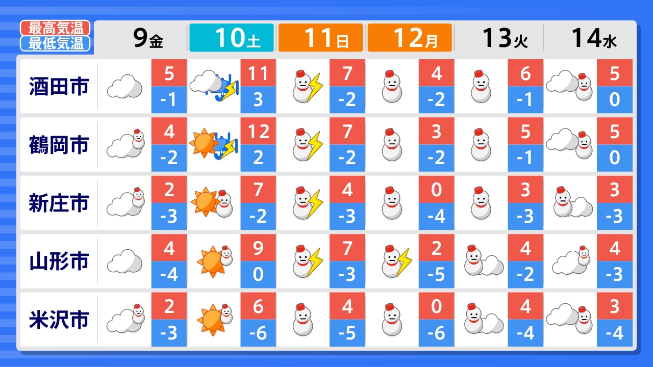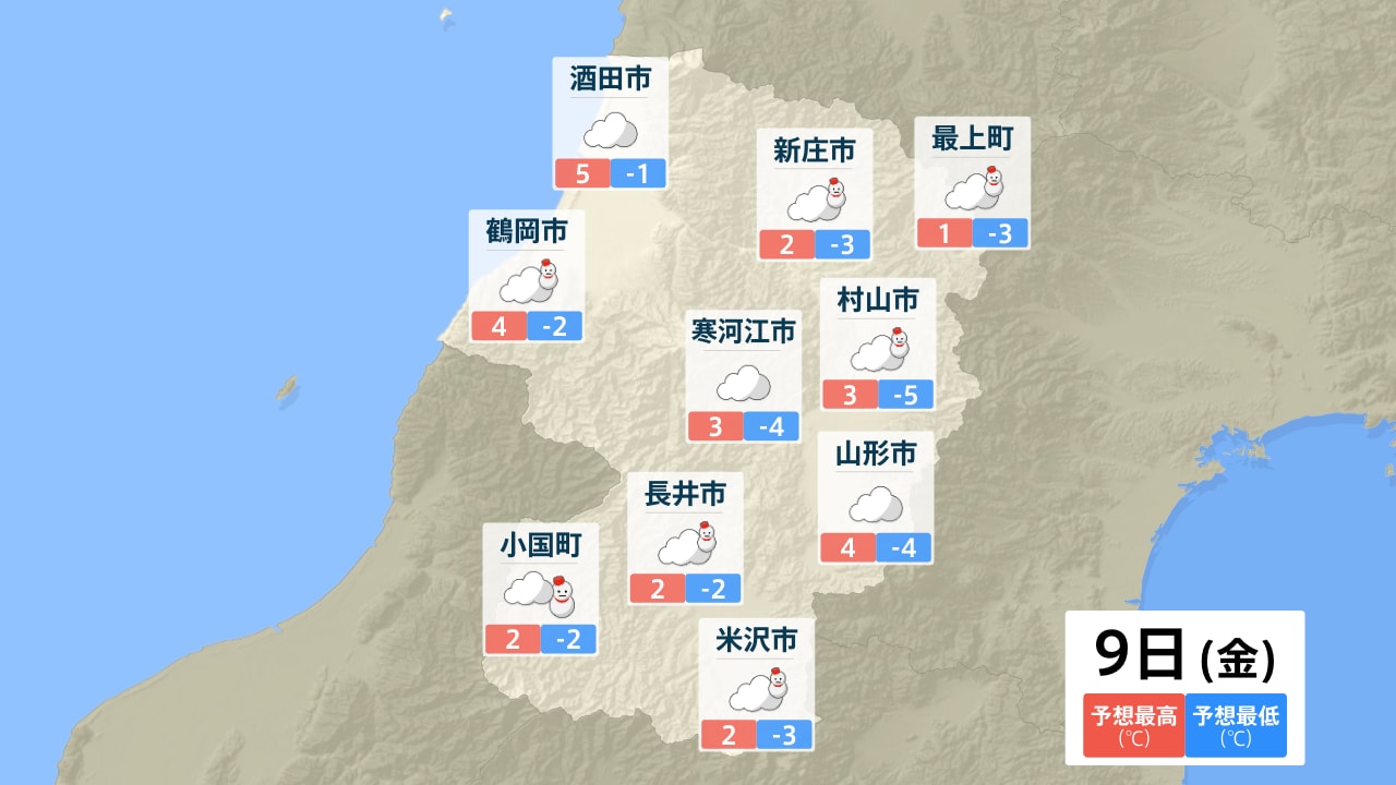 酒田市 新庄市 最上町 鶴岡市 寒河江市 村山市 山形市 長井市 小国町 米沢市