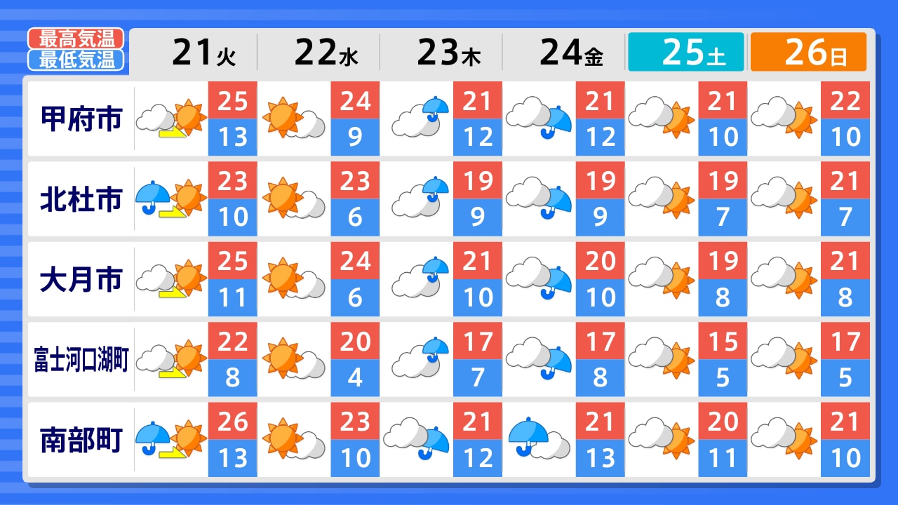 18日は汗ばむ陽気で気温差に注意 19日は6月上旬並みの気温に 米津龍一気象予報士が解説 山梨